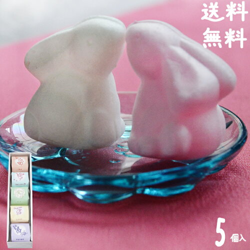 カラフルな5色のうさぎは、あんず、白あん小いちご、こしかの子、ゆず、丹波大納言とそれぞれ違う味わいで飽きることなく楽しめます。