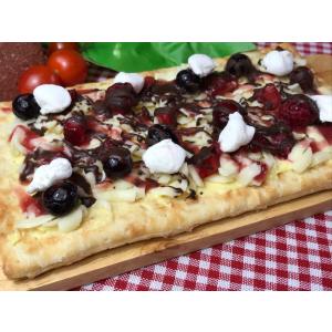 こちらのドルチェピザはパイ生地を使用しているので、パイ生地ならではのサクサクの食感を楽しめます!(パイ生地ならピザじゃないんじゃ……と言うツッコミはなしでお願いします。笑)