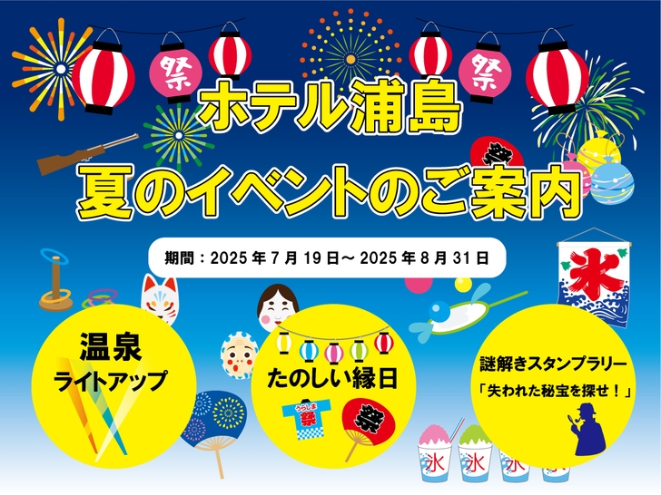 | 備考 | ・謎解きスタンプラリー、縁日、温泉ライトアップ等 子供が喜ぶイベントが多数開催される ・お菓子セット、手持ち花火セット等お子様にうれしい特典あり ※有料のお子様のみ |